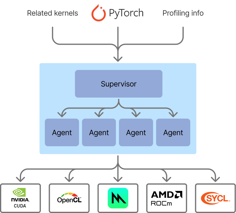We are hard at work at pushing the envelope further with this technique - smarter agent swarms, better context, more collaboration between agents, and more backends (ROCm, CUDA, SYCL, etc). We're also working on speeding up training workloads, not just inference.