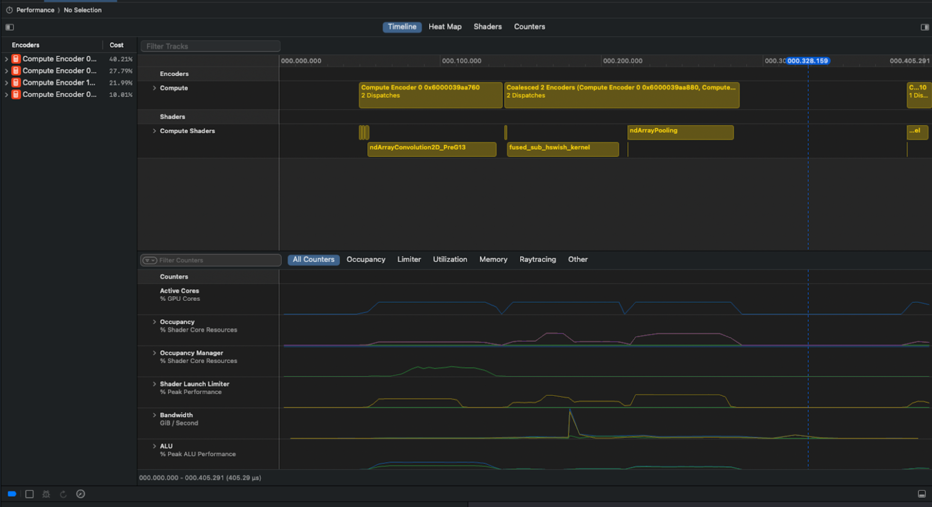 103 id<MTLComputeCommandEncoder> encoder = [commandBuffer computeCommandEncoder];